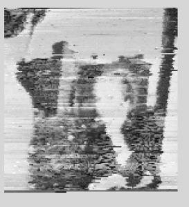 This was a 2*2 pixel transmission, that took about 15 minutes. It had also lost some information, and contrast. The audio signal received is mapped to the generated shade of gray (between 0 and 255). Because the range of the received value tends to vary, both based on the output settings, and the connection, I am now trying to figure out a way to have the program learn to adjust its own range based on the current input. For example, if the maximum received value is constantly being hit, it should increase a little, and while it is not being reached it can degrade a slower pace. The same can be applied to the minimum volume received.