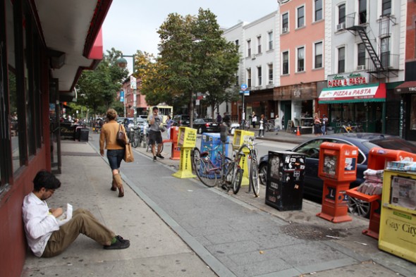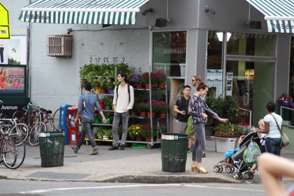 People who were waiting for somebody, or who wanted to stay at the intersection and on their phones for longer, would usually line themselves up against the edges of the garbage cans and light posts, or in the few nooks provided by the flower stands or ice box.